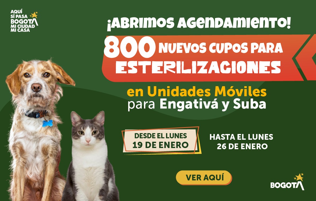 Bogotá anuncia 800 nuevos cupos de esterilizaciones en Unidades Móviles para las localidades de Suba y Engativá durante enero.